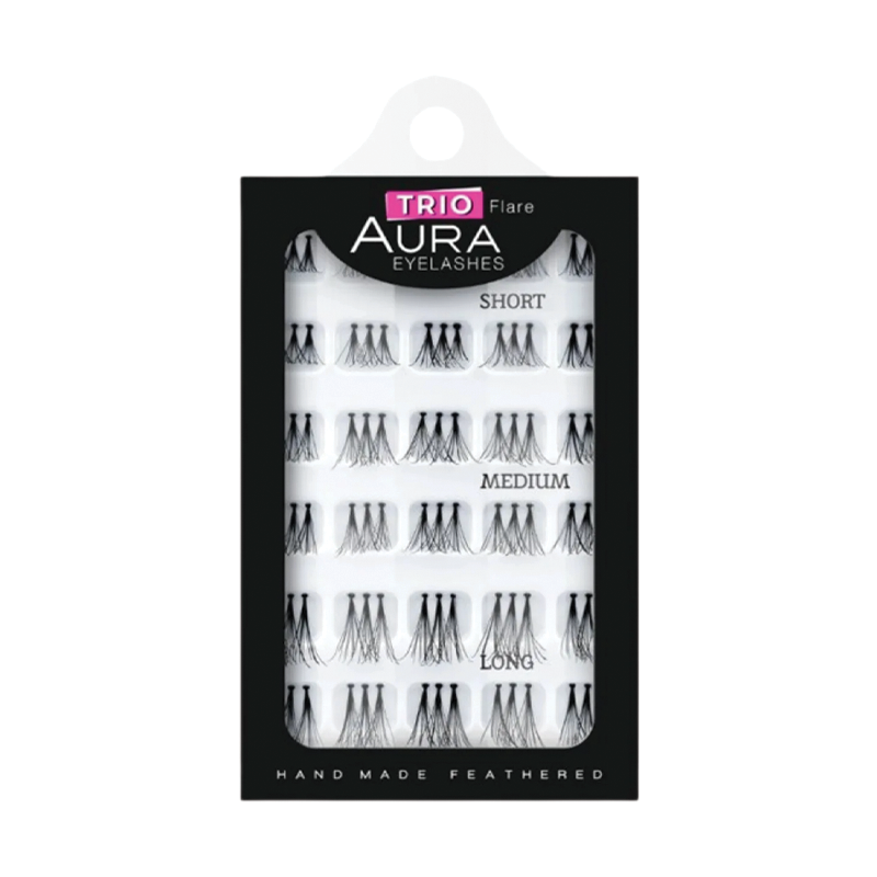 Aura Trio pramenčići vještačkih trepavica savršeni su za postizanje prirodnog, ali definisanog izgleda trepavica. Svaki pramen sadrži tri nježno spojene dlačice koje se lako nanose i pružaju efekat punijih i uredno raspoređenih trepavica. Zahvaljujući laganom materijalu i fleksibilnosti, osjećaj tokom nošenja je potpuno prirodan.
